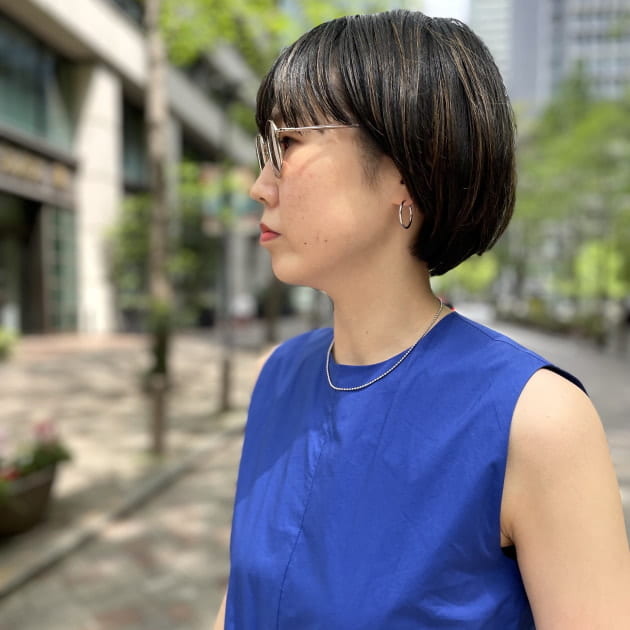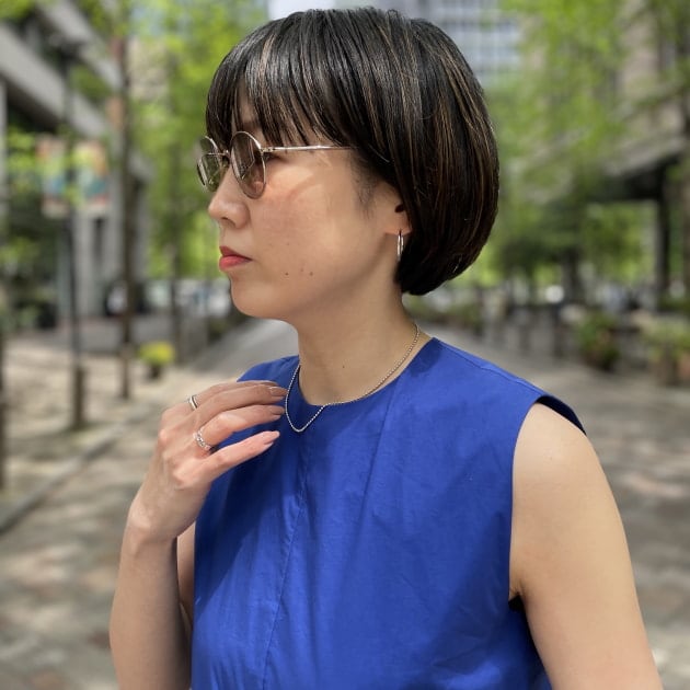 普段あまりサングラスを掛けない方には、画像の様な肌馴染みの良いカラーがおすすめ、室内で外さなくても悪目立ちしませんよ!夏を意識して、シルバーアクセサリーで合わせたのもポイントです