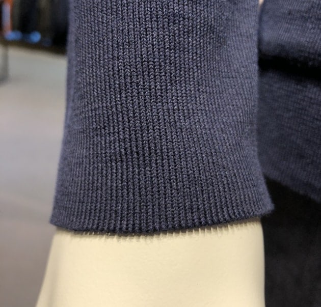 もし、袖が長くてお詰めになりたい場合に、同じ仕上げをご希望の際は、本部の修理部署経由で、ニット専門のお直し屋さんに依頼する形になります。