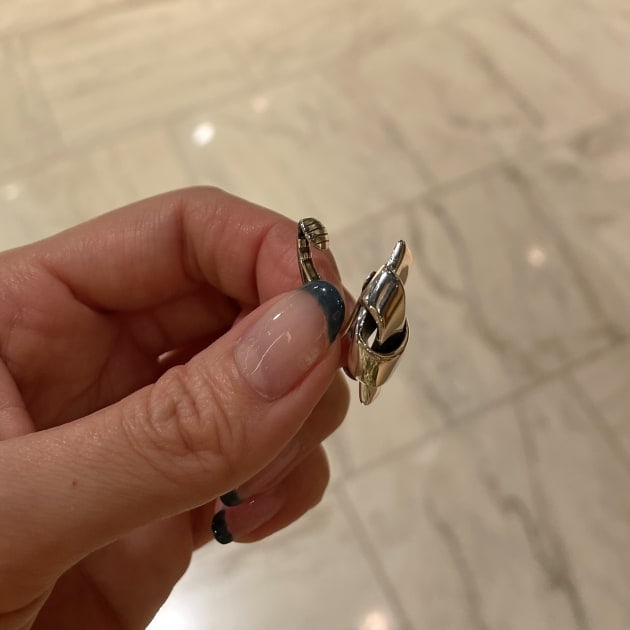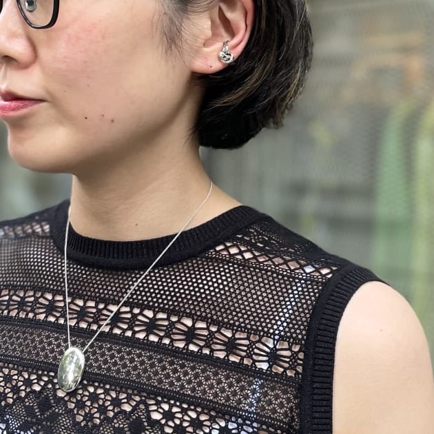 ミニマルなデザインでも存在感を放つイヤカフはこちら。同ブランドのオーバル型のネックレスと合わせています