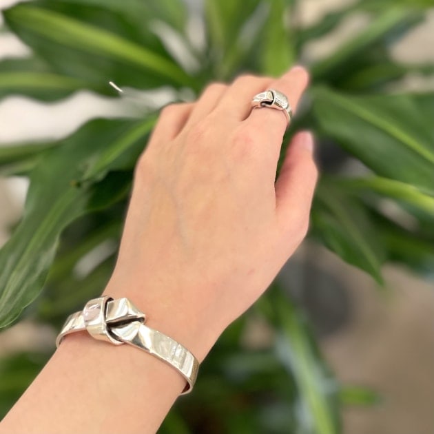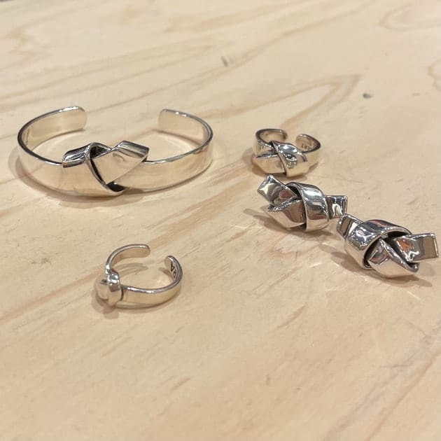 先ずは、最近入荷の新作から数点ピックアップしました‥クールな印象になる事が多いシルバーアクセサリーですが、くるっとツイストを効かせたユニークなモチーフ。リボンの様な可愛らしさしさも相まったデザインです‥