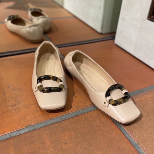肌に馴染むピンク寄りのベージュ、スクエアトゥもポイントです