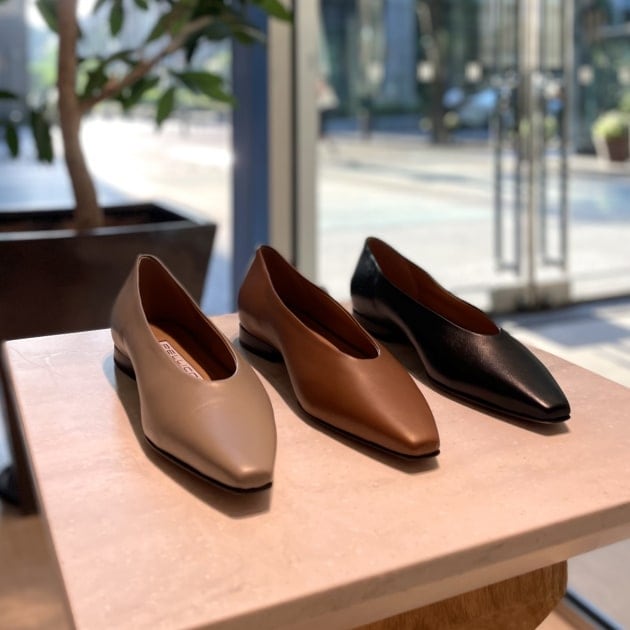 肌に馴染む柔らかなゴートレザーを使用したのフラットシューズ。細身のセミスクエアトゥが、シャープな足元を演出します