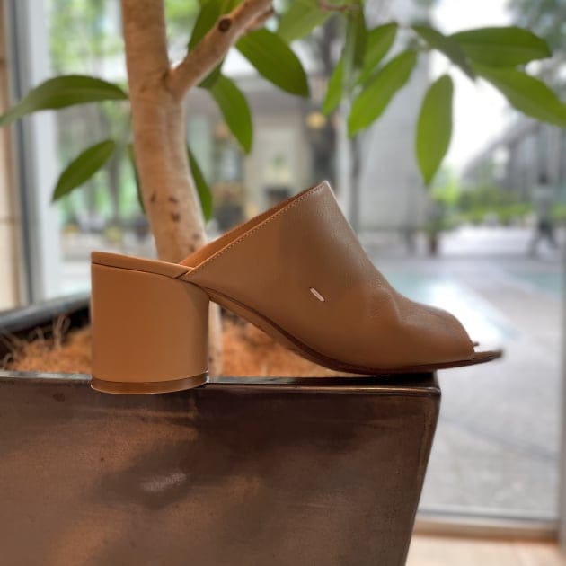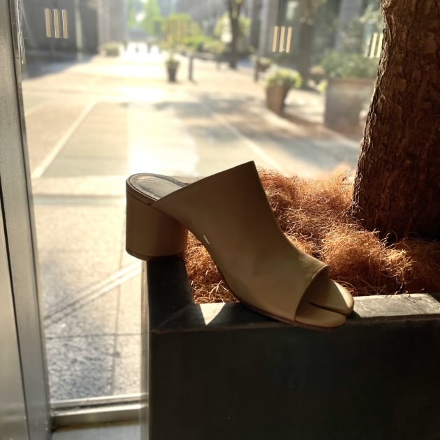 そしてお次は個人的な憧れもあるMaison Margielaのアイコニックなタビミュール。肌馴染みの良いヌーディーカラーで涼しげな足元を演出します。履けば気分の上がる夏コーデへ