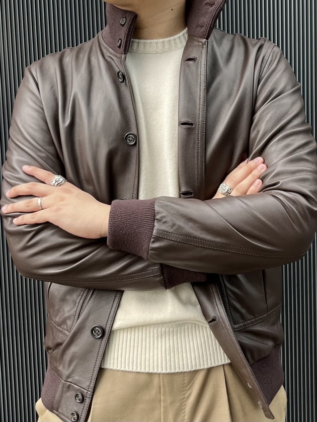 ちなみに、こちらは長い間ご好評を頂き続けている、〈CINQUANTA〉のドライビングブルゾン。