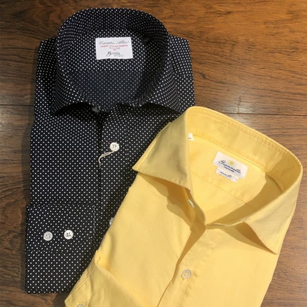 <GIANNETTO> 別注 イエローオックスフォード ワイドカラーシャツ
