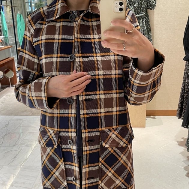 ベーシックなデザインに大きめのチェックがクラシカルな雰囲気。ラグランスリーブで大きすぎないショルダーラインも気に入りました‥最近覚えた自撮りです‥
