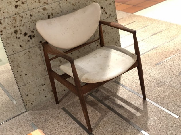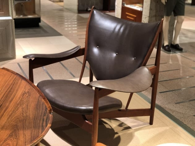 実は私が新人だった20年程前、横浜の店舗のシューズコーナー前で使われていた思い出の椅子でして、当時から<Finn Juhl>のことはスゲーんだぞ…という風に刷り込まれており、当時でウンビャク万の価値があると言われてビビらされましたが…とにかく美しい椅子だなとは長年思っていました。