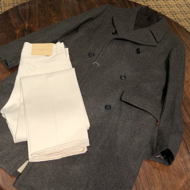 生地感は、(あくまでイメージとしては)しっかりめなメルトン地位の地厚なウールメインの生地です。