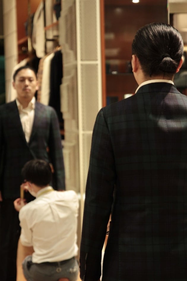 今回、念願のビームス プラス 有楽町に異動となりました、スタッフ河野に採寸をしてもらいました。