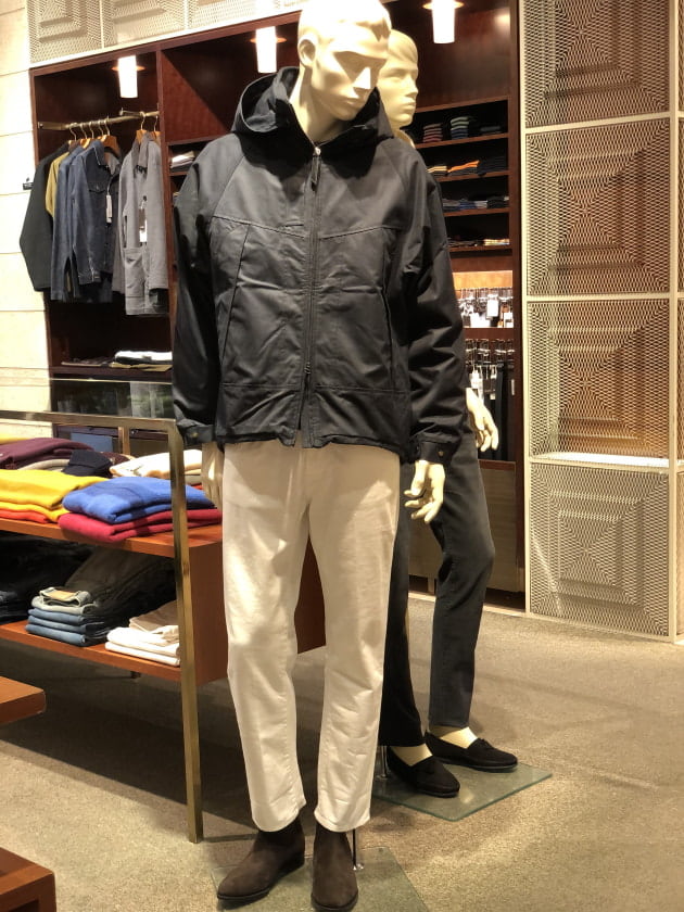 38,40,42,44というサイズ展開でして、マネキン君でミドルゲージのニットの上からサイズ40を着用してみました。