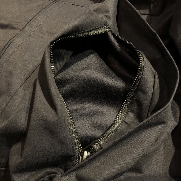 ジップ内や襟内側の起毛された内張や
