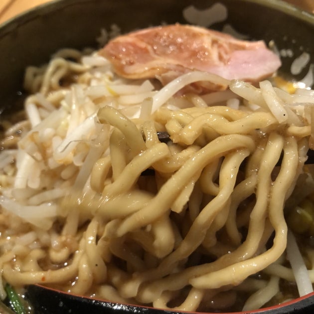 ど・みそよりドロっと感を抑え、味噌の旨味とスパイスも効いたスープに、コシのある太麺のハーモニーが美味です。