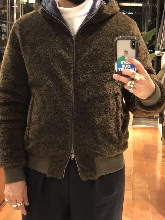 ボリュームのあるボアフリースと、インナーダウン位の量感のダウンとのコンビモデルです。