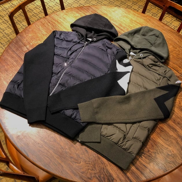 〈MONCLER〉MAGLIONE ニット×ナイロン ダウンパーカです。