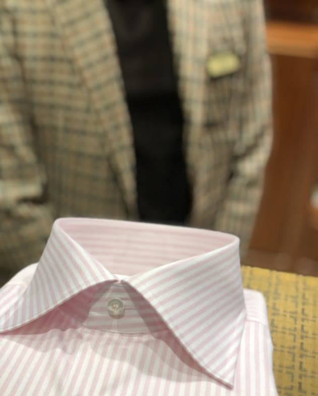 別のブランドの話ですが、仕立ての良いシャツなのに、ラウンドタブみたいなエリ型ばかりやらないで欲しい…と以前ある重鎮が嘆いていましたが…