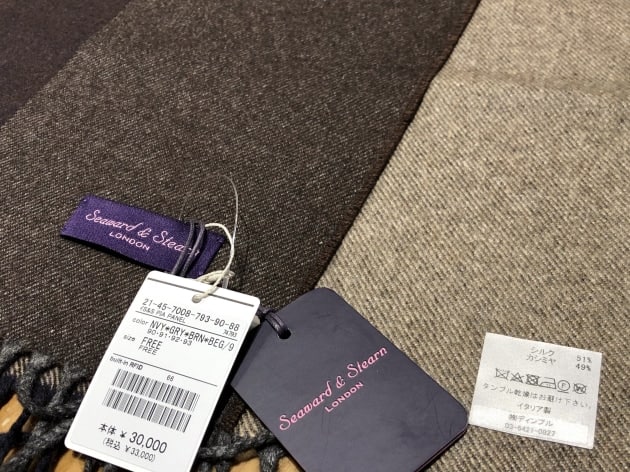 最後に、他店に問合せがあるとアレですので…最初のカットで巻いていた薄手のストールは、<Seaward & Stearn>
