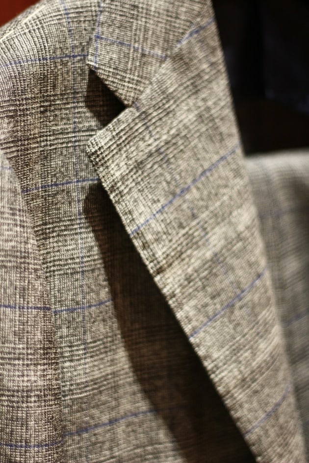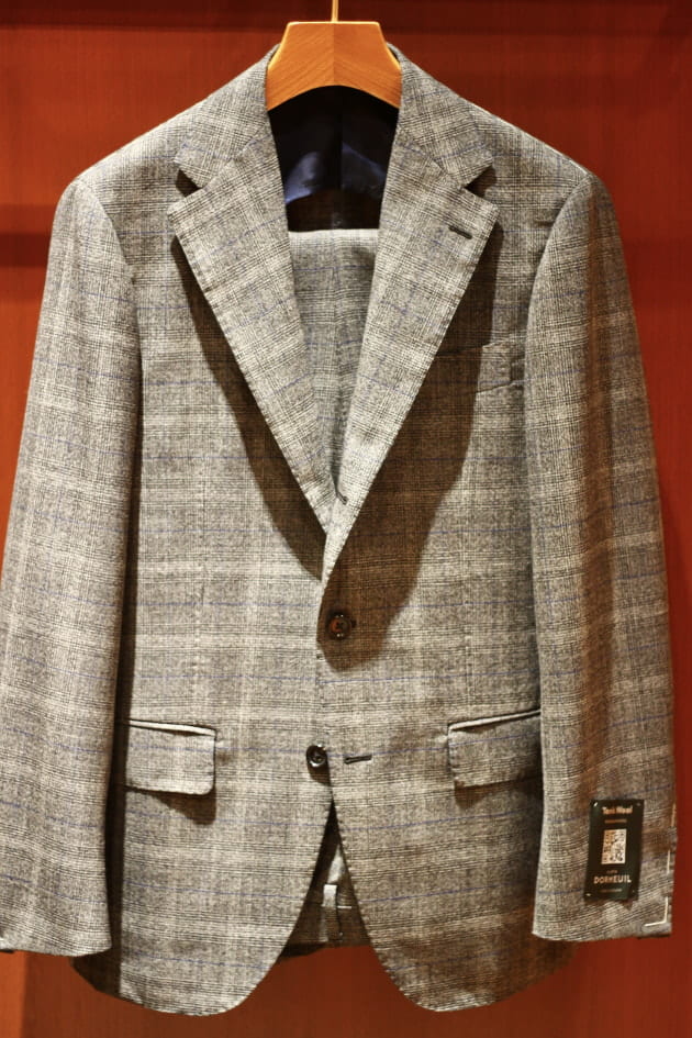 DORMEUILのモヘヤウール生地を用いた、グレンチェックスーツ。