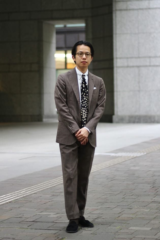 いつもの如く、拘りに拘った素晴らしいスーツスタイルをしております。