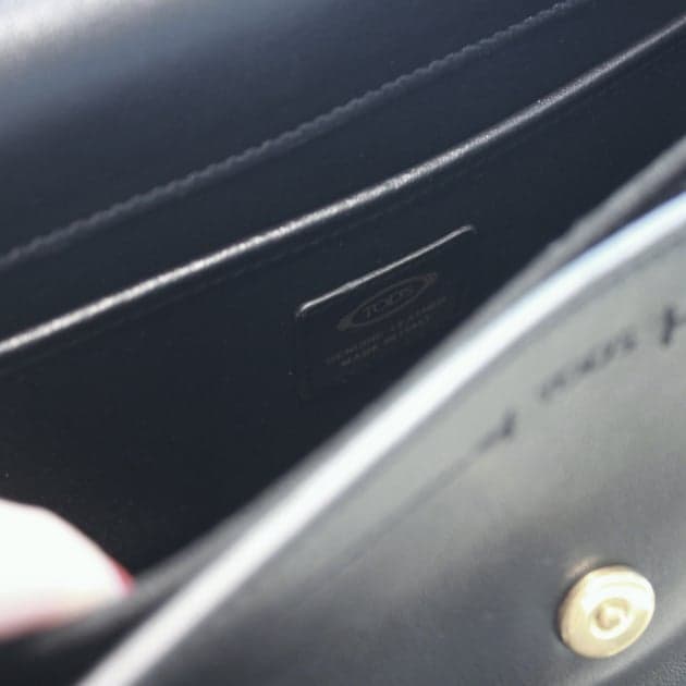 前面には〈TOD’S〉ロゴをホットスタンプ、中央にはTステッチのディテールが施されています。