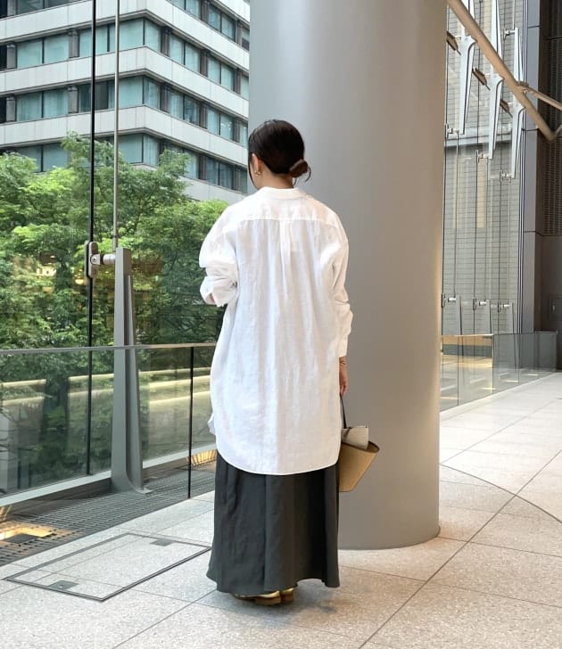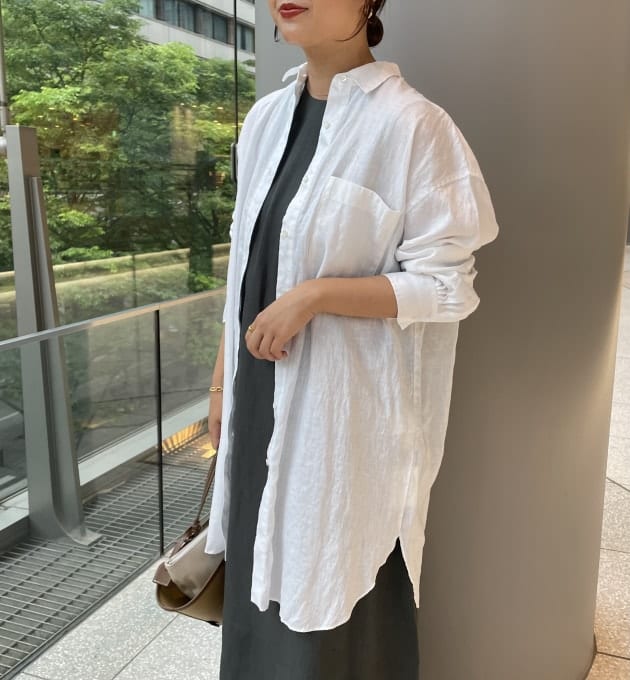 夏場にコットン素材のシャツだと少し見た目も重たくなりがちなので、リネンシャツが1枚あると着回しが効きます◎