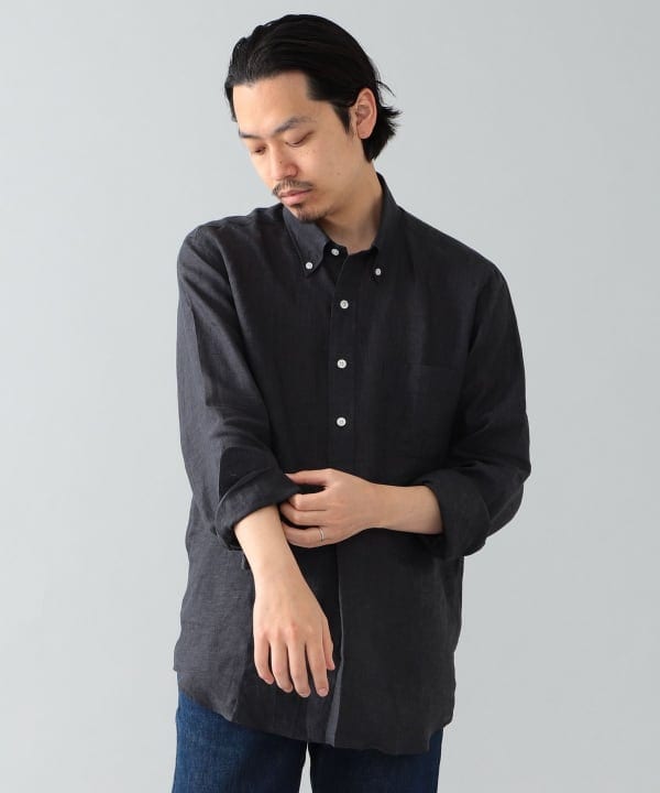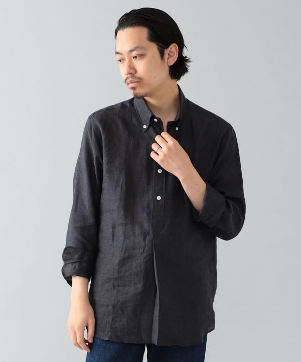 <BEAMS F> リネン プルオーバー ボタンダウンシャツ