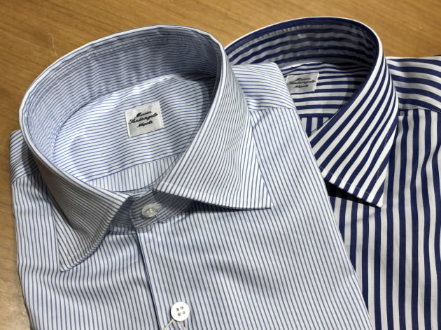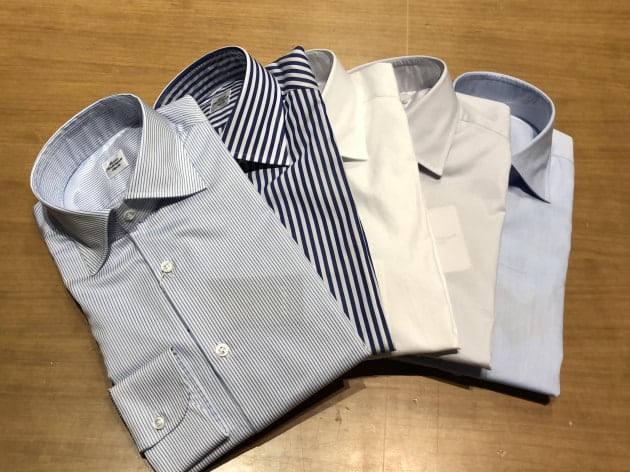 洒落た生地ですが、ここ何年か洒落た生地はほとんどタブカラーシャツでの仕入れになるというブレないラインナップでしたので…幅広い方にご案内できるワイドカラーシャツであることに歓喜しております。