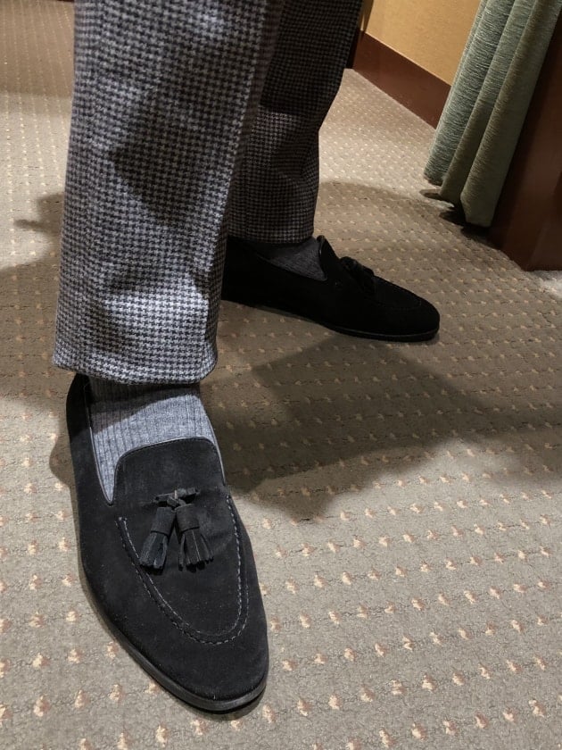 普段高級靴をメインで履かれているY様ですが、スリッパみたいだね〜と仰りながらも、ポルペッタの気軽さも気に入っていだけたようです。
