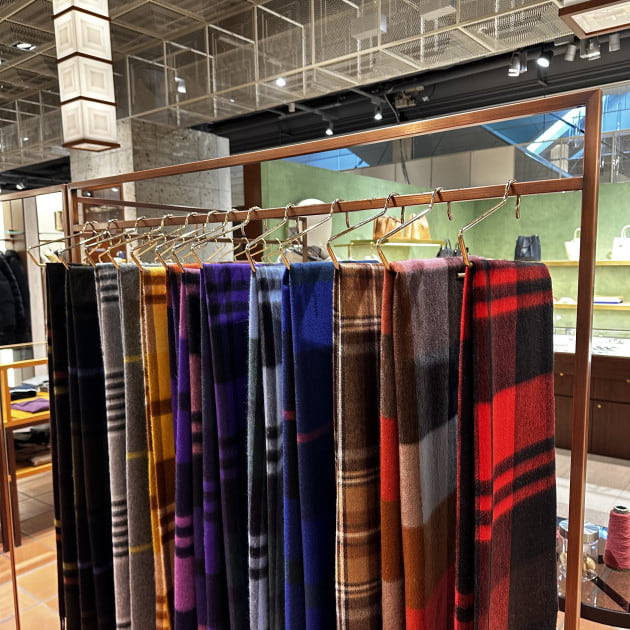 1767年に創業した英国的スタイルの歴史の中で最も古い会社の一つ。密度のあるウエイトの生地を時間をかけて縮絨し、丁寧に起毛するという基本的な起毛コートの仕上げを踏襲した本格的なマフラー、ストールの生産を得意としているブランドです( ◠‿◠ )