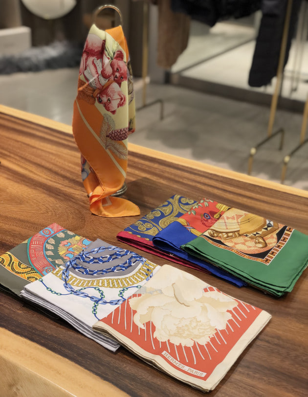 そして、当店では昨年大好評だったヴィンテージ<HERMES>のスカーフを今年はバリエーション増やしてお取り扱いしております。