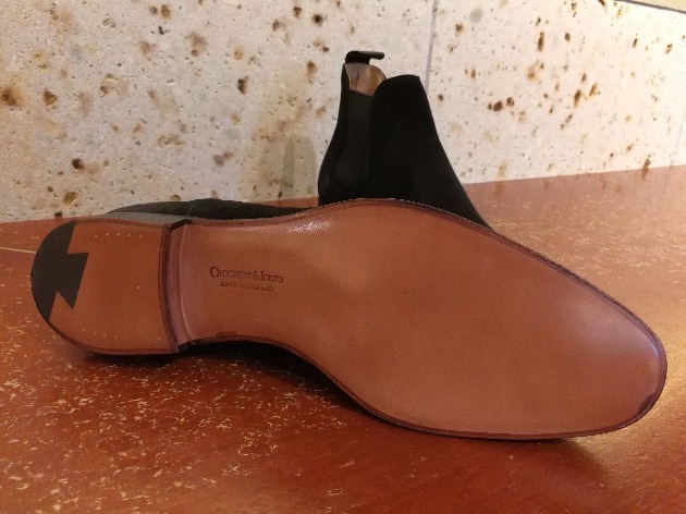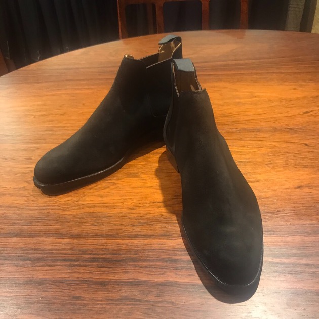 アッパーにはサイドゴアブーツでは珍しいブラックカーフスエードを使用。