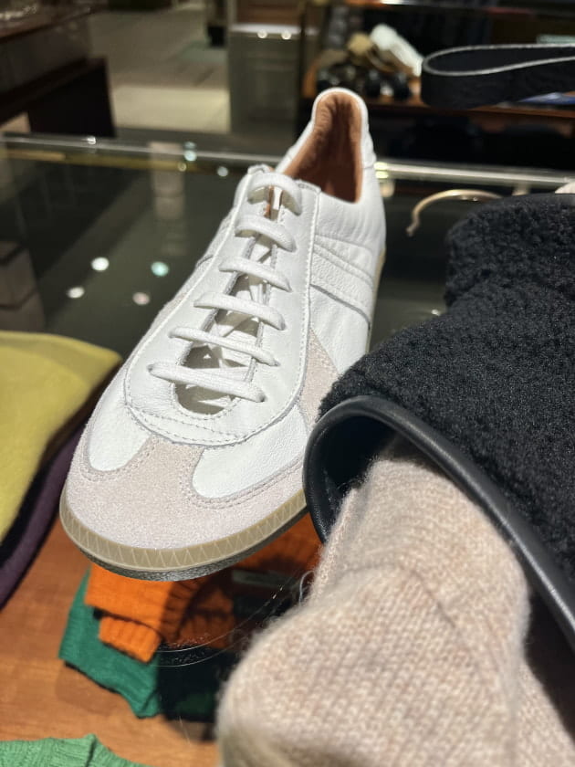 足元には、〈REPRODUCTION OF FOUND〉のジャーマントレーナーを。
