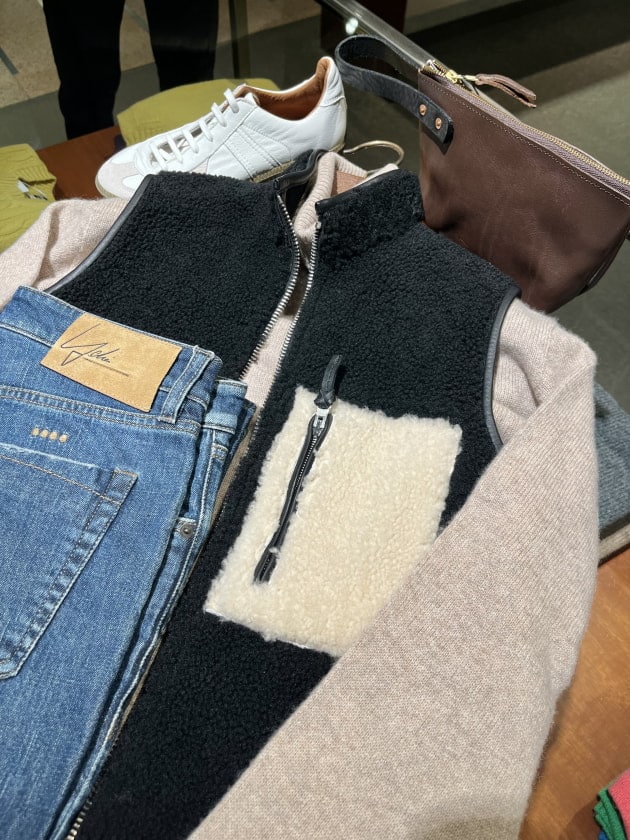 メインはこちら、〈CINQUANTA〉のムートンリバーシブルベスト。