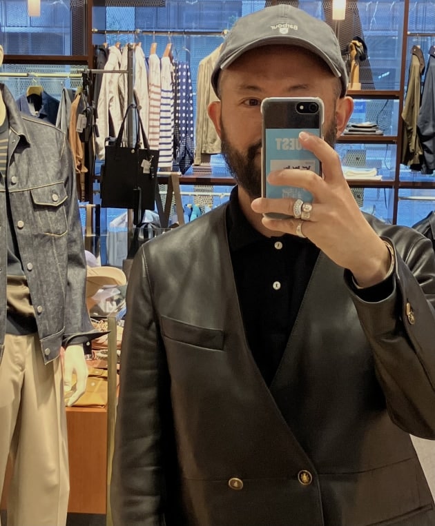 レザーにヒゲやボーズ、ロン毛のハード系に見られがちな方も、キャップを被るとマイルドな印象になるかもしれません…