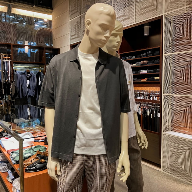 テーラードジャケットやブルゾンの合わせとは一味違う新鮮なルックスをモノにできるうえ、コチラのマネキンのように堅苦しさを感じさせない洒落感際立つスタイリングもこれからの時期に充分狙えます。