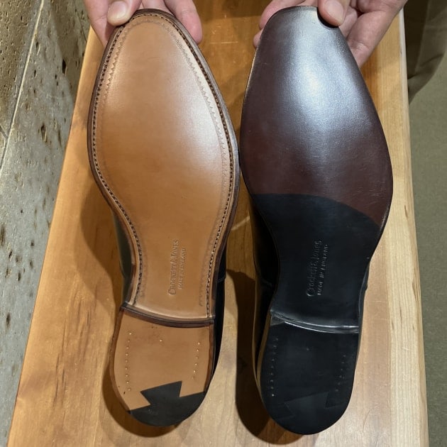 ウエストからヒールにかけてのフィット感を高めた現代的かつ日本人の足形にフィットしやすい木型という共通点はあるのですが、AUDLEY3は、<CROCKETT&JONES>では久しぶりの取扱いとなるハンドグレードラインのモデルです。