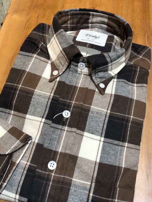 【BLACK FRIDAY】【別注】Drake’s / ブラウンチェック ボタンダウンシャツ
