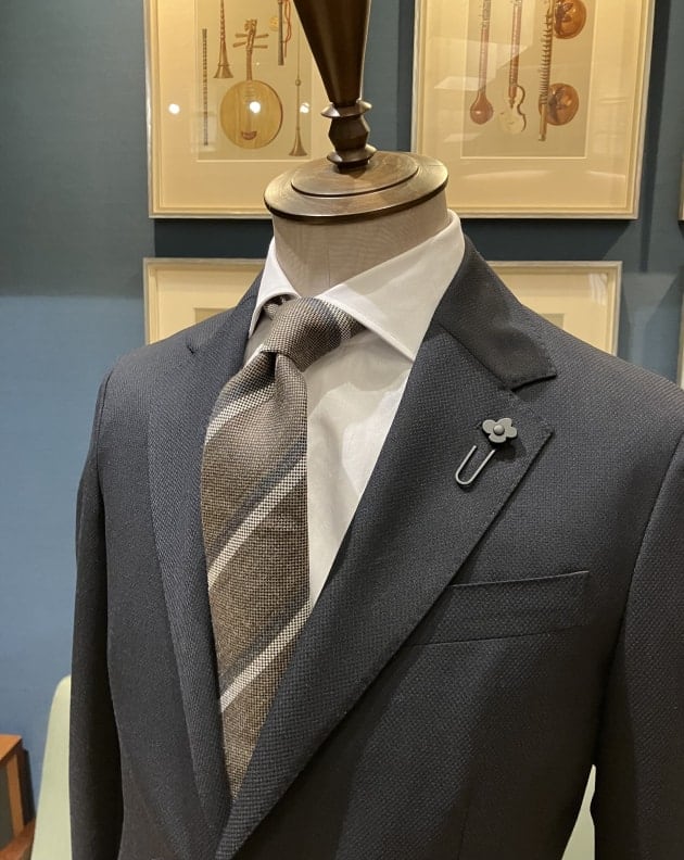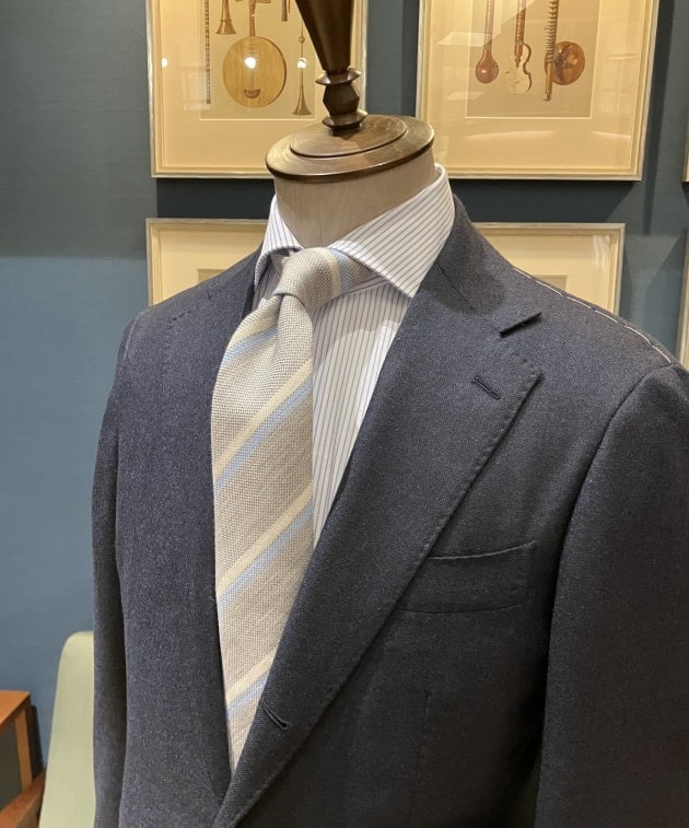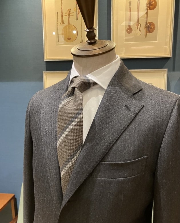 上質な素材を使用したスーツにはVゾーンも素材に見合った品を選ばないとバランスが取れません。