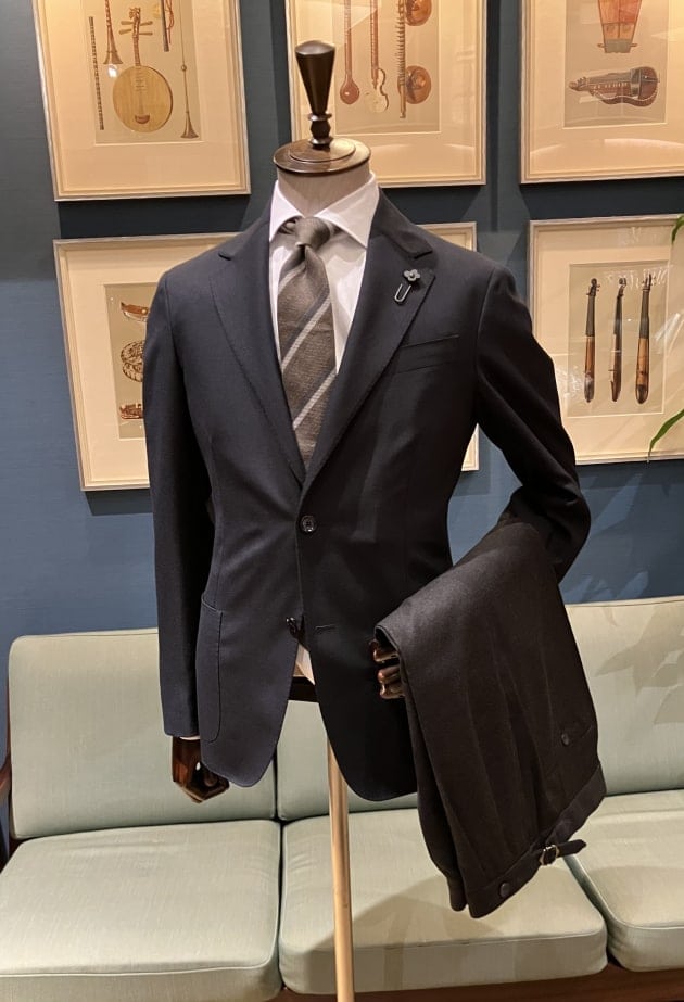 ウール素材を使用しておりますので秋冬シーズン限定になりますが、サキソニーやフランネル、ツイード素材のスーツやジャケットには相性抜群です。