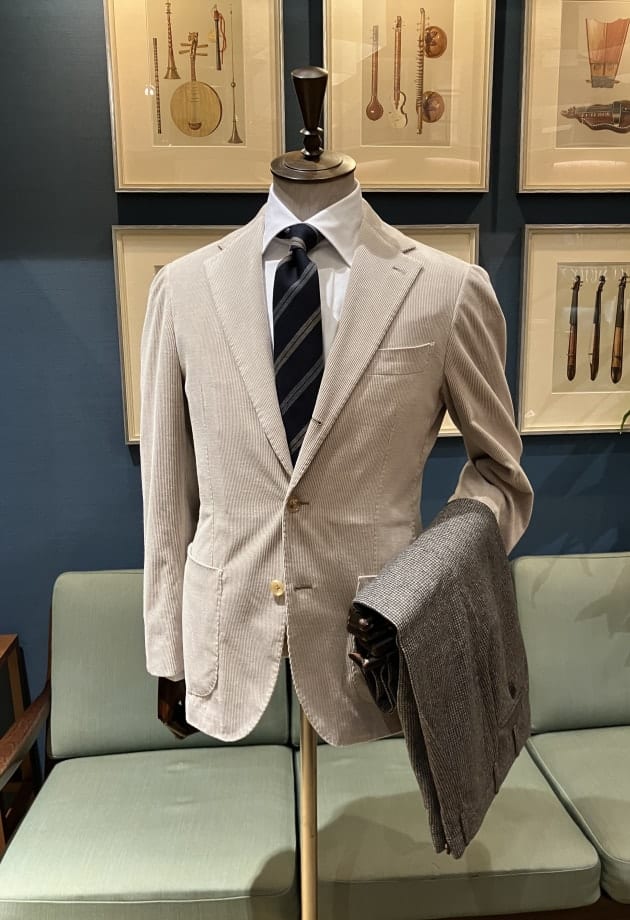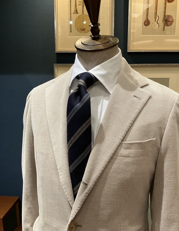 コーデュロイのジャケットです。タイドアップする際、素材感や柄選びは難易度が高くないですか?