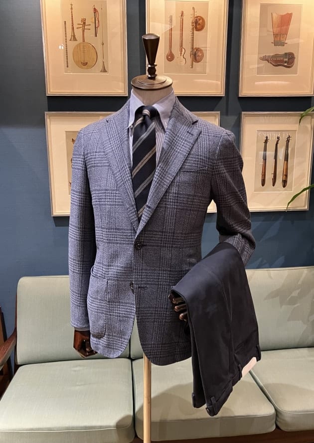 前回ご紹介した柄と同様、こちらの柄も入荷後ご好評いただいております。どちらの色もコーディネートしやすくスーツ、ジャケットどちらにも使える事もご好評いただけている要因かもしれません。