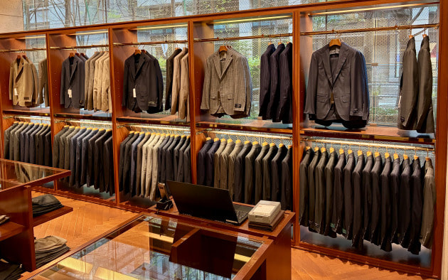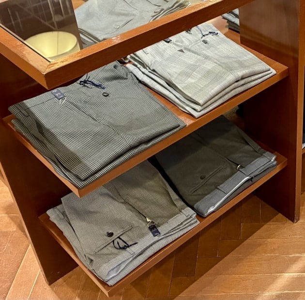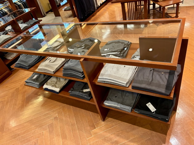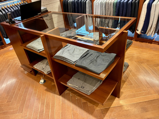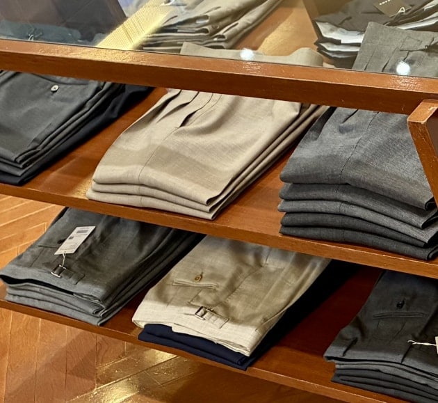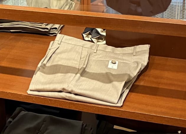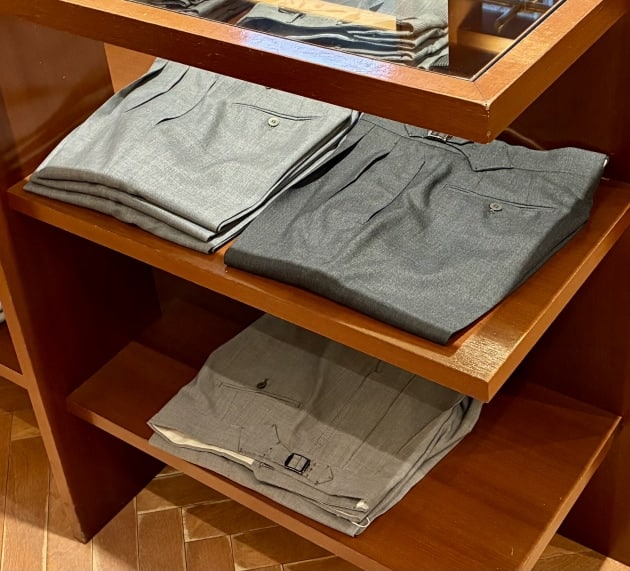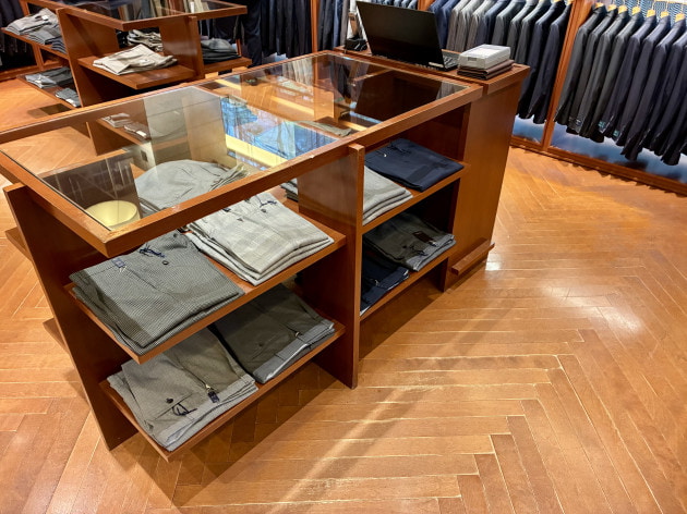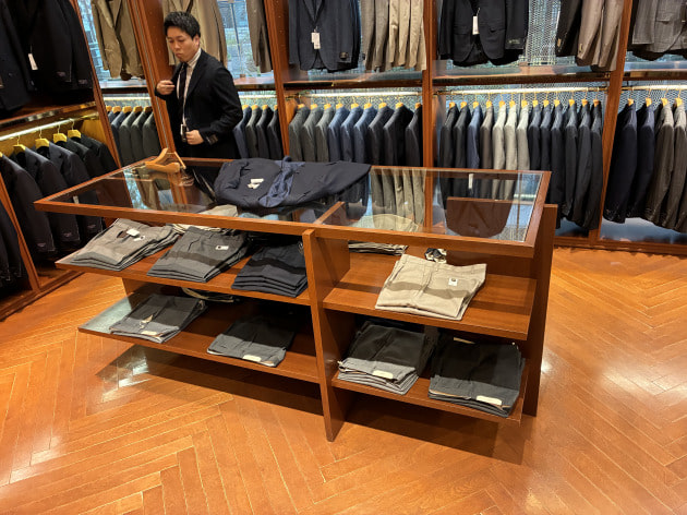 スーツコーナーの棚には、ウールパンツを。