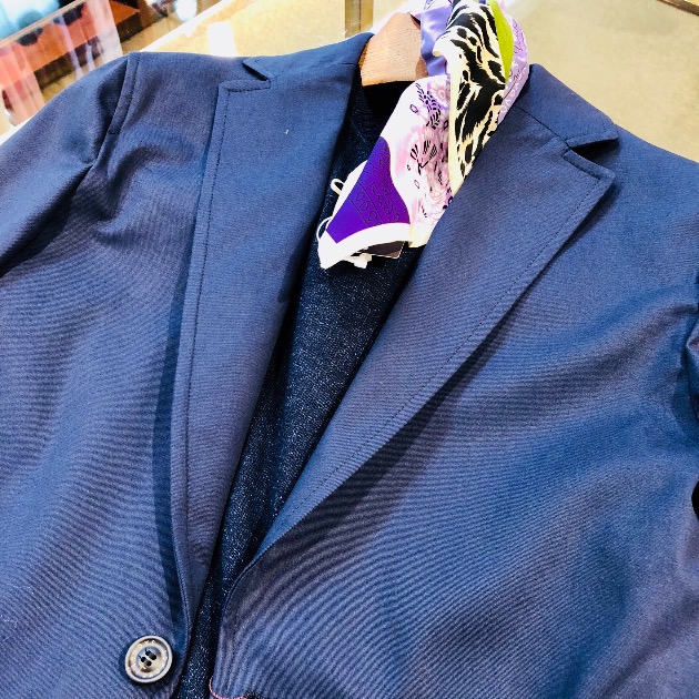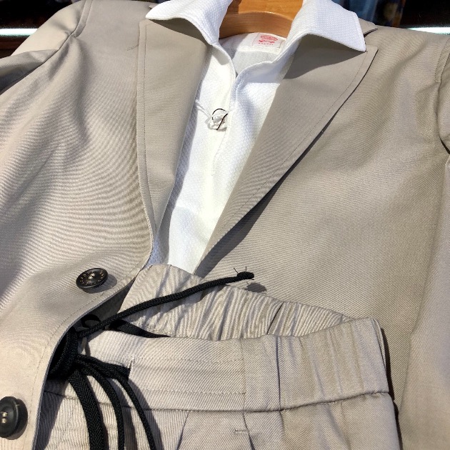 普通のコットンスーツのようなイメージで使えるベージュとネイビー。