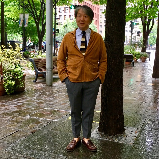 TODAY'S CHOICE takahashi.hideki 2018.06.15 高橋です。今日から何日かは雨ですかね。梅雨ですね。雨の日のレザー久しぶりにきてみました。夏のレザーってやつですね。インナークルーネックでも良かったのですが、なんとなくタイドアップです。パンツは、ウールで、ドレッシーになんか半端ですね。足元は雨の日の最強パラブーツ、大活躍中です。今日はこの辺でここまで引き続きご贔屓に、