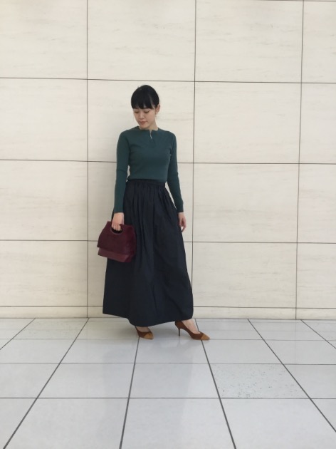 軽くて程よくボリュームのある上品なスカート。形状記憶の素材を使用しており、しわが目立ちにくくなっております。