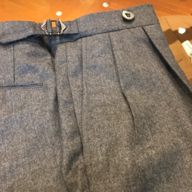 起毛した生地のパンツが、