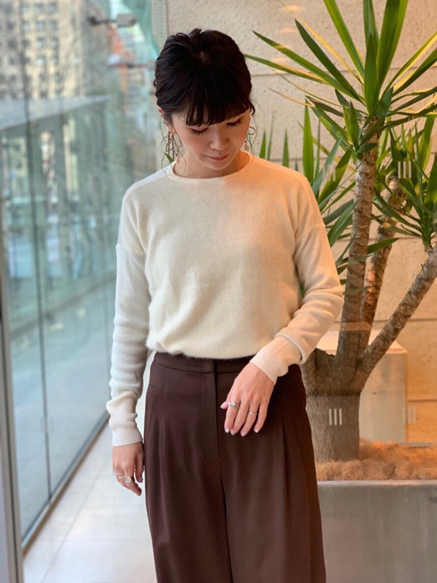 前身頃はフラッフィ、腕周りはリブですっきりと見せてくれます。