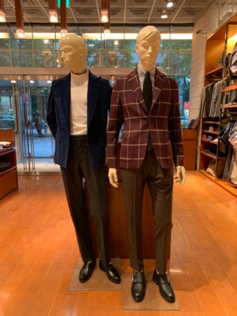 右の彼は引き続きですが、左が新作マネキンコーディネートです。2人とも着用は<T-JACKET>。