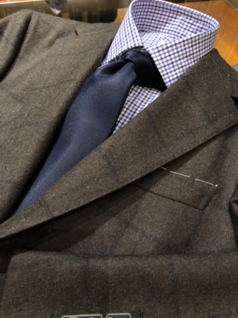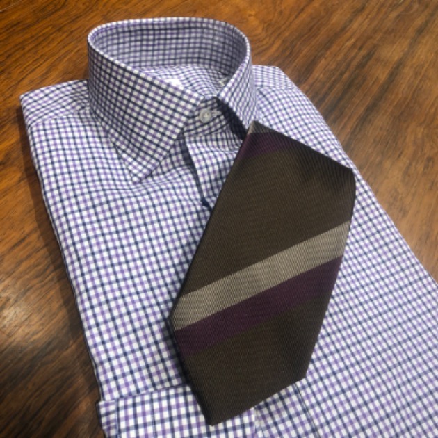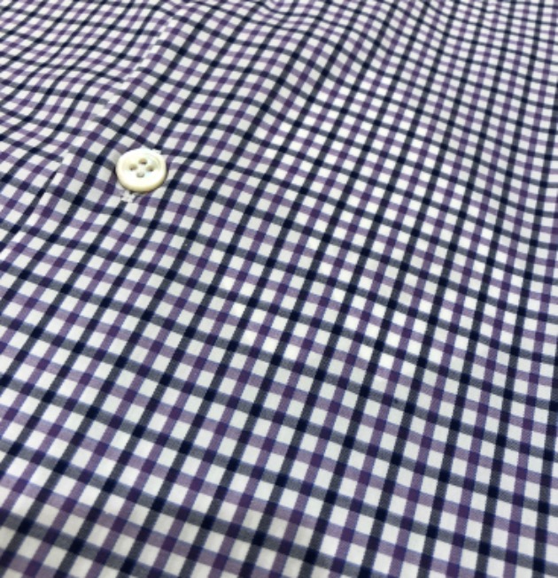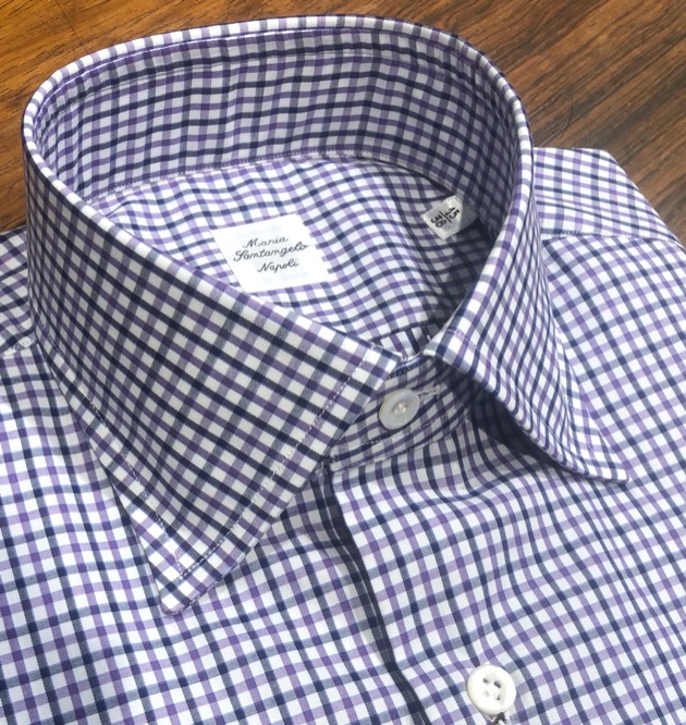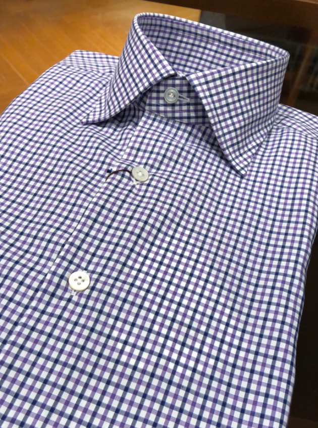 コンパクトなエリと、なんといってもパープルとネイビーのナイスカラーリングのタッターソールチェックがステキです。