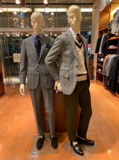 先日ご紹介したプレッピー君(右のマネキン)の相棒です。クールなグレースーツで決め込んだ左の彼。