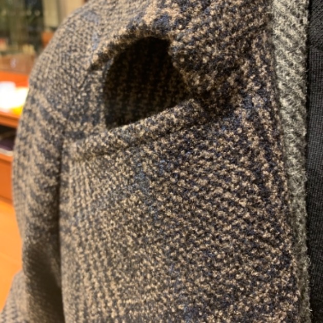 このモデル、着た時の雰囲気がとても良いです。ウール生地特有のドレープ感がエレガントですね。是非店頭でお試しになってください。ご紹介の生地以外もいくつかのバリエーションを展開しておりますよ。
